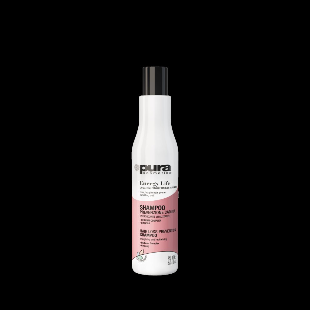 PURA KOSMETICA Energy šampon je jemný, ale účinný vlasový přípravek navržený pro oslabené, jemné vlasy, které mají sklony k vypadávání. Produkt šetrně čistí pokožku hlavy a zároveň dodává vlasům vitalitu, energii a pocit svěžesti, přičemž podporuje celkový vzhled zdravějších, silnějších vlasů.